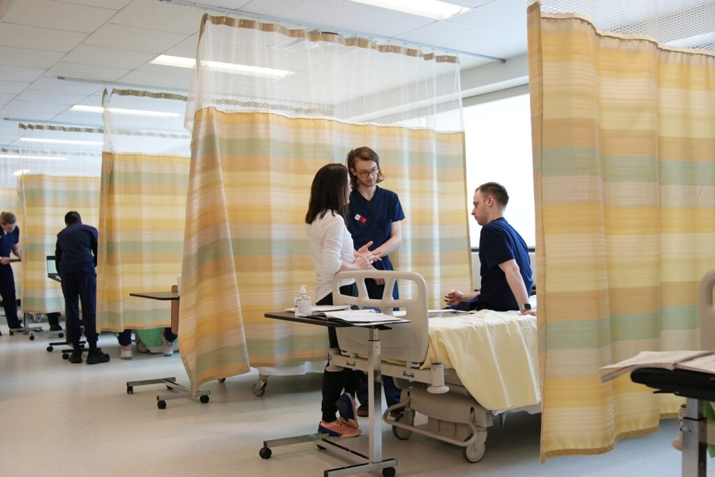 “One of our simulated patients is non-binary,” she explains. “It gives students the chance to ask about pronouns, to make a mistake, to correct it and to get more comfortable. It’s about building confidence through practice.”
